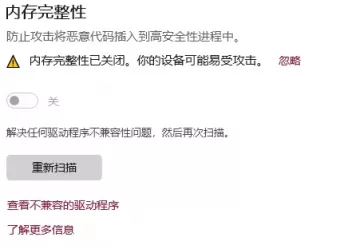 起因群友在群里发了一个Windows安全中心的截图,里面提示“内存完整性已关闭。你的设备可能易受攻击”,...
